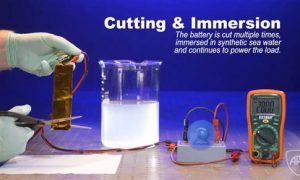 Όλα αυτά δεν μπορεί να τα αντέξει μια συμβατική μπαταρία. Η καινοτόμος μπαταρία χρησιμοποιεί έναν αβλαβή ηλεκτρολύτη από γέλη πολυμερούς με βάση το νερό (που αποκαλείται «νερό σε αλάτι») και ο οποίος λύνει το πρόβλημα της αστάθειας που έχουν οι παραδοσιακές μπαταρίες λιθίου-ιόντων. Ακόμη κι όταν είναι πλήρως εκτεθειμένη στον αέρα και στο νερό, ακόμη κι όταν υποστεί ζημιά, η μπαταρία συνεχίζει να παρέχει ρεύμα. Σε πρώτη φάση, η μπαταρία, που επιτρέπει πάνω από 4.000 κύκλους επαναφόρτισης, θα αξιοποιηθεί σε στρατιωτικές εφαρμογές.