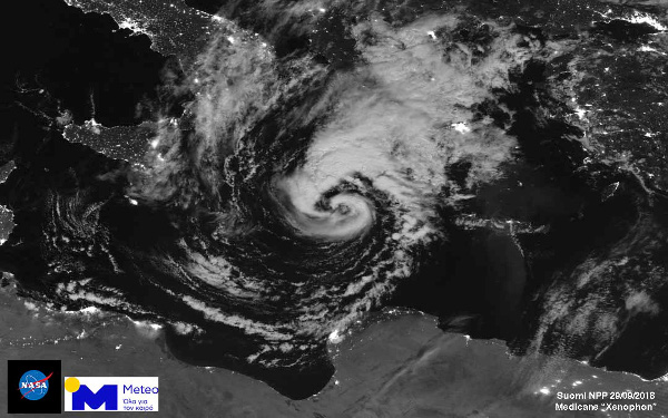 Στη φωτογραφία που ακολουθεί φαίνεται καθαρά η δομή του μεσογειακού κυκλώνα που “σάρωσε” αρκετές περιοχές της χώρας μας το Σάββατο.