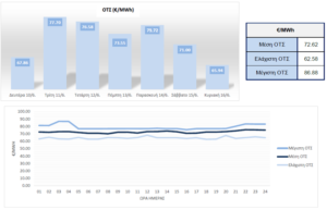 Σύμφωνα με στελέχη της αγοράς, η σημαντική άνοδος της μέσης ΟΤΣ το προηγούμενο επταήμερο οφείλεται κυρίως στην αυξημένη ζήτηση, η οποία ξεπέρασε τη 1 TWh σε εβδομαδιαίο επίπεδο, σημειώνοντας την υψηλότερη επίδοση των τελευταίων 15 εβδομάδων. Επιπλέον πίεση προς τα πάνω στην μέση ΟΤΣ ασκήθηκε, επίσης, από την πτώση των καθαρών εισαγωγών κατά 50 GWh σε σχέση με την προηγούμενη εβδομάδα.