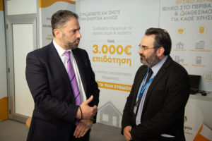 Το περίπτερο της ΕΔΑ ΑΤΤΙΚΗΣ επισκέφτηκαν ο Υπουργός Περιβάλλοντος και Ενέργειας κ. Κωστής Χατζηδάκης και ο Γενικός Γραμματέας Χωρικού Σχεδιασμού και Αστικού Περιβάλλοντος κ. Ευθύμιος Μπακογιάννης, οι οποίοι ενημερώθηκαν από τον Εκτελεστικό Πρόεδρο της ΕΔΑ ΑΤΤΙΚΗΣ κ. Πιέρρο Χατζηγιάννη για το πλάνο επέκτασης του δικτύου διανομής φυσικού αερίου, τις νέες περιοχές της Αττικής που προστίθενται σε αυτό, αλλά και τα λοιπά επενδυτικά σχέδια της εταιρείας.