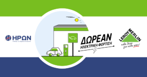 Δωρεάν φόρτιση ηλεκτρικών αυτοκινήτων σε όλα τα καταστήματα Leroy Merlin με την «πράσινη» ενέργεια του Ήρωνα.