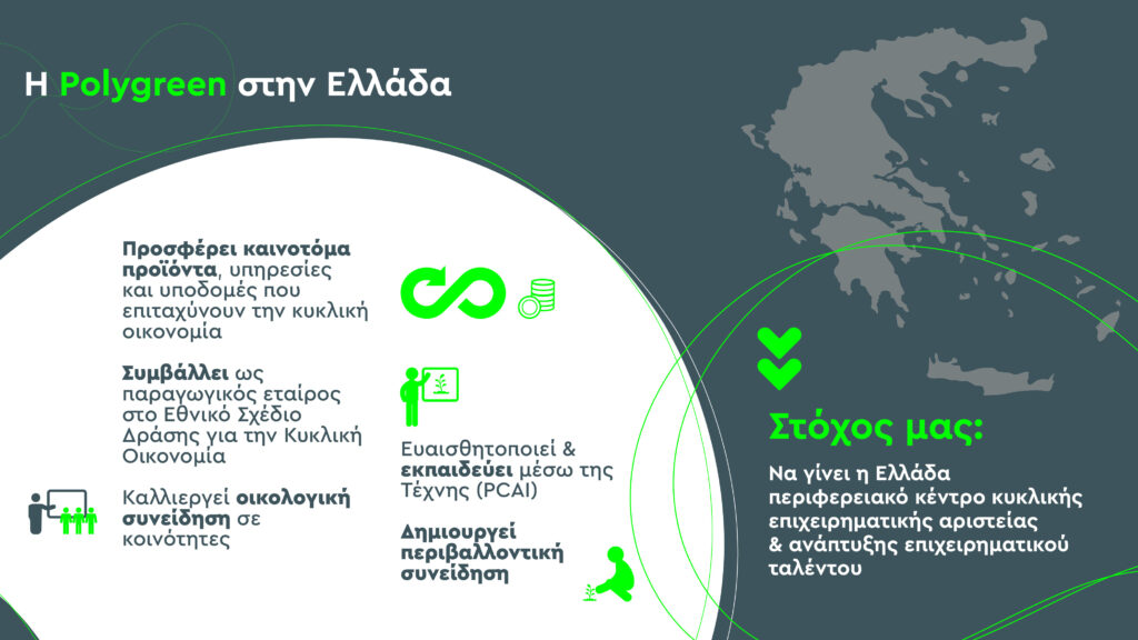 Στην Ελλάδα, η Polygreen φιλοδοξεί να διαδραματίσει ηγετικό ρόλο και να συμβάλλει καθοριστικά στη μετάβαση της χώρας στην κυκλική οικονομία, δημιουργώντας παράλληλα ένα νέο πυλώνα ανάπτυξης που θα ενισχύσει την περαιτέρω δραστηριοποίηση της στα Βαλκάνια, όπου η Polygreen καταγράφει ήδη σημαντική παρουσία.