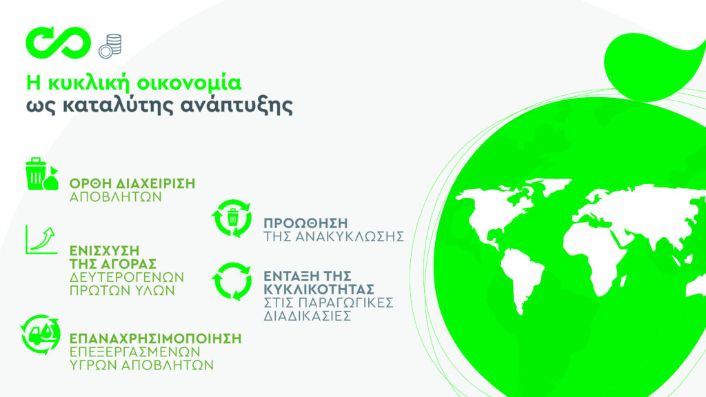 Ταυτόχρονα, στόχος της είναι να προσφέρει ευρύ φάσμα υπηρεσιών διαχείρισης και ενεργειακής αξιοποίησης αποβλήτων, αντιμετώπισης της θαλάσσιας ρύπανσης, υποστήριξης οργανισμών και επιχειρήσεων για την υιοθέτηση κυκλικών πρακτικών αλλά και ευαισθητοποίησης πολιτών και καταναλωτών σε θέματα περιβαλλοντικής βιωσιμότητας.
