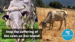 «Ζώντας στο ελληνικό νησί της Κω, είναι αποκαρδιωτικό να βλέπει κανείς αγελάδες να στέκονται δεμένες στον ήλιο χωρίς σκιά, κατάλληλη τροφή ή νερό. Βρίσκονται παντού!