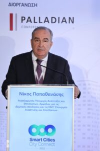 Ο Αναπληρωτής Υπουργός Ανάπτυξης και Επενδύσεων, αρμόδιος για τις Ιδιωτικές Επενδύσεις και τις ΣΔΙΤ, κ. Νίκος Παπαθανάσης στον χαιρετισμό του, σημείωσε, μεταξύ άλλων, ότι η «έξυπνη» πόλη με τις υπηρεσίες που προσφέρει στον πολίτη, είναι επίκαιρη όσο ποτέ και δίνει το στίγμα της υπηρεσίας, που θέλει να προσφέρει η κυβέρνηση, η πολιτεία, στον πολίτη. ‘Όπως επισήμανε είναι στο DNA της κυβέρνησης να υπηρετεί τον πολίτη και αυτό κάνει από την πρώτη στιγμή. Η «έξυπνη» πόλη είναι στην υπηρεσία του πολίτη και δίνει στον πολίτη μια καθημερινότητα διαφορετική, καλύτερη, ένα αίσθημα ασφάλειας, διαφορετικό ενεργειακό αποτύπωμα. Κάθε τι που αγγίζει την καθημερινότητα, την προσβασιμότητα του πολίτη σε υπηρεσίες είναι πολύ σημαντικό και αυτό υπηρετούν οι «έξυπνες» πόλεις. «Ως κυβέρνηση ενισχύουμε τις «έξυπνες» πόλεις με πολλά προγράμματα που αποτυπώνονται στο σχέδιο Πισσαρίδη το οποίο εκφράζει την εθνική στρατηγική και υπηρετεί το όραμα δεκαετίας της κυβέρνησης», ανέφερε ο κ. Παπαθανάσης. Και συμπλήρωσε ότι εκτός από αυτά προγράμματα υπάρχει και το ΕΣΠΑ 2021-27 και το Ελλάδα 2.0 το οποίο με υψηλούς πόρους έρχεται να στηρίξει την οικονομία, συνολικά 77 δισ. ευρώ αν ληφθεί υπόψιν και η κοινή αγροτική πολιτική. Εξήγησε δε ότι οι βασικοί άξονες της εθνικής στρατηγικής που εφάπτονται με τις «έξυπνες» πόλεις είναι ο ψηφιακός μετασχηματισμός και η ενεργειακή αναβάθμιση. Αναφερόμενος στα προγράμματα που εξυπηρετούν τον πολίτη ανέφερε χαρακτηριστικά το ΣΔΙΤ «ULTRA FAST BROADBAND» το οποίο τρέχει τώρα και μέχρι το τέλος του 2022 θα προσφέρει υψηλές ταχύτητες στο διαδίκτυο που θα διευκολύνουν την καθημερινότητα του πολίτη. Κλείνοντας, αναφέρθηκε στον στόχο για αντιστροφή του brain drain και επισήμανε τη σημασία του, καθώς «θέλουμε τις Ελληνίδες και τους Έλληνες πίσω στην χώρα μας, ώστε να αντιμετωπίσουμε το δημογραφικό πρόβλημα και θέλουμε να δημιουργήσουμε τις συνθήκες για να γυρίσουν πίσω τα νέα παιδιά». Και πρόσθεσε ότι αυτό «το βλέπουμε στις μεγάλες εταιρείες όπου το 15-20% είναι νέα παιδιά, τα οποία βρήκαν την ευκαιρία να γυρίσουν πίσω».