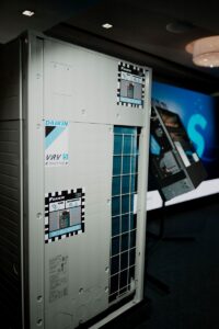 To πρωτοποριακό και καθ’ όλα φιλικό προς το περιβάλλον σύστημα ανάκτησης θερμότητας VRV 5 (Variable Refrigerant Volume) παρουσίασε η Daikin Hellas την Δευτέρα, 19 Σεπτεμβρίου, σε εκδήλωση που πραγματοποιήθηκε παρουσία πλήθους συνεργατών. Πρόκειται για τη νέα, καινοτόμο λύση κλιματισμού της Daikin, η οποία εστιάζει στη μείωση τόσο των άμεσων όσο και των έμμεσων εκπομπών διοξειδίου του άνθρακα, αξιοποιώντας παράλληλα την απλότητα και την ευελιξία στον σχεδιασμό και την εγκατάσταση, που προσφέρουν τα συστήματα VRV.