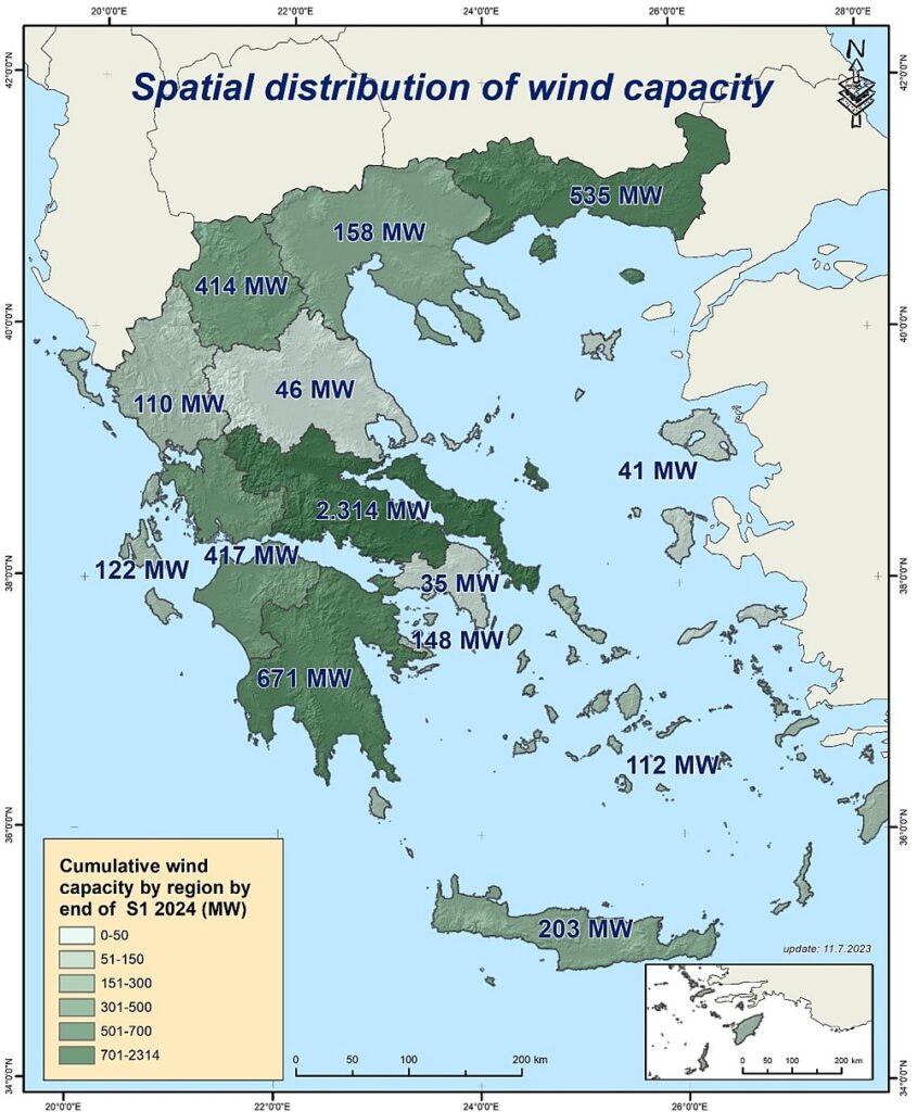 Κατά το Α’ εξάμηνο του 2024 εγκαταστάθηκαν νέες ανεμογεννήτριες μόνο σε έξι Περιφέρειες της χώρας: Δυτική Μακεδονία, Πελοπόννησος, Στερεά Ελλάδα, Δυτική Ελλάδα, Ιονίου και Βορείου Αιγαίου.